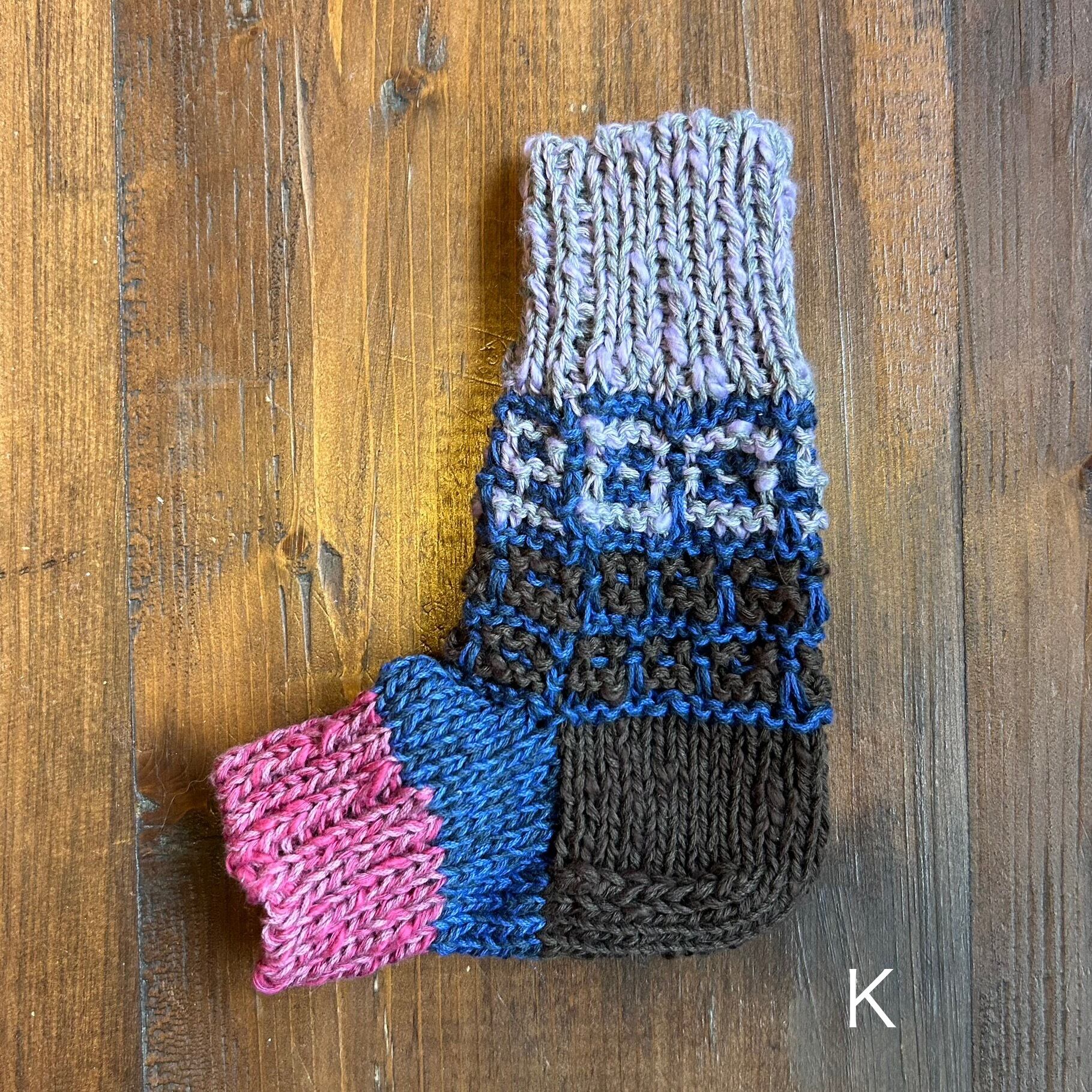 こちらのレッグウォーマーは、片足ずつの販売です。同じものは2足ありません。お好きな色柄を片足ずつ選んで、ご自分だけの組み合わせを作ってください。破れても、片足ずつ買い足せるのもうれしいですね。