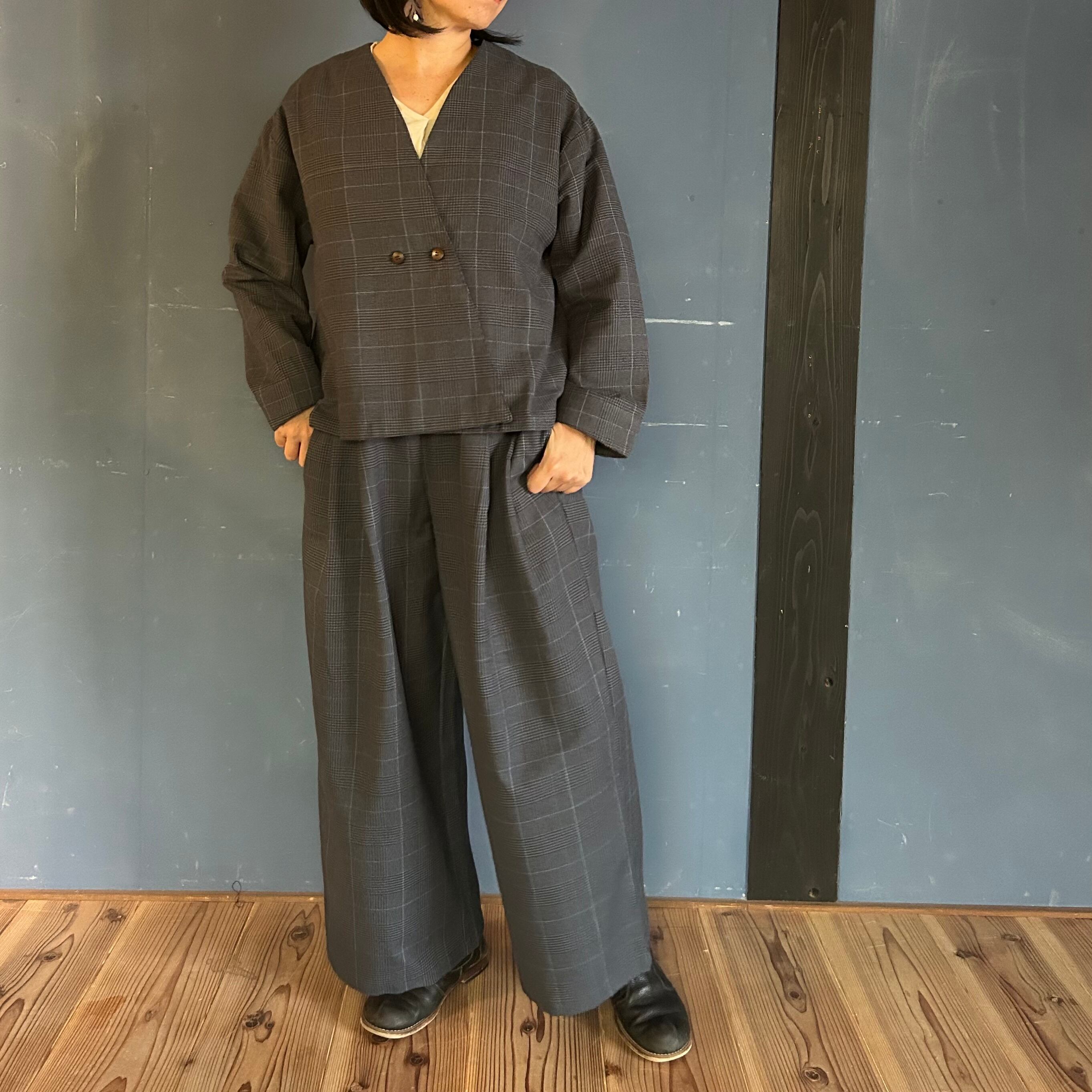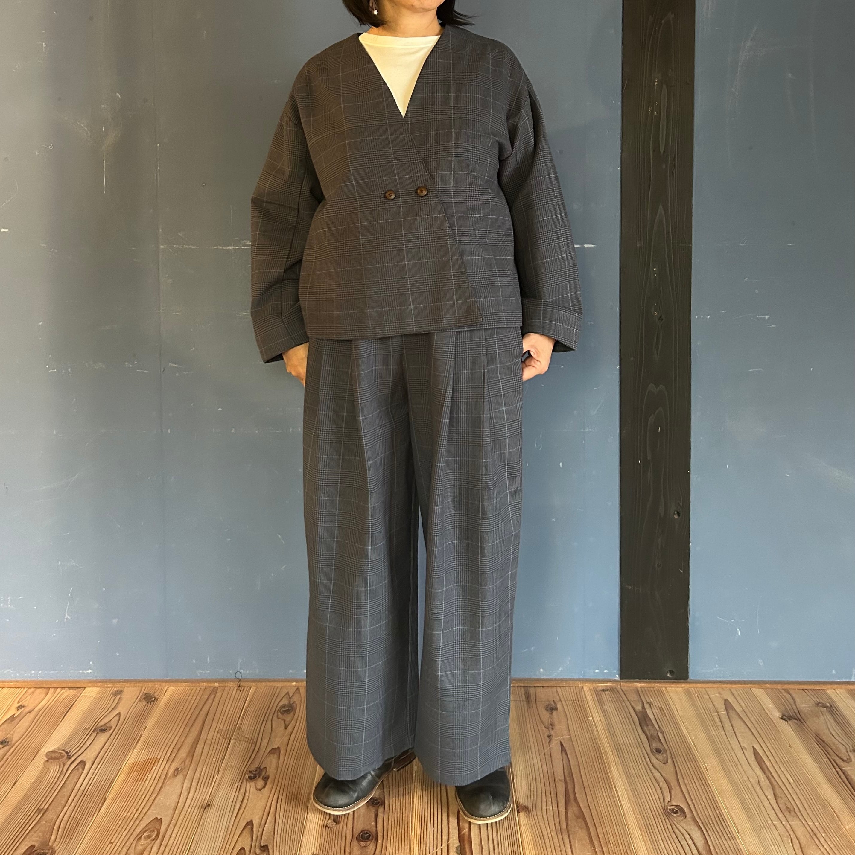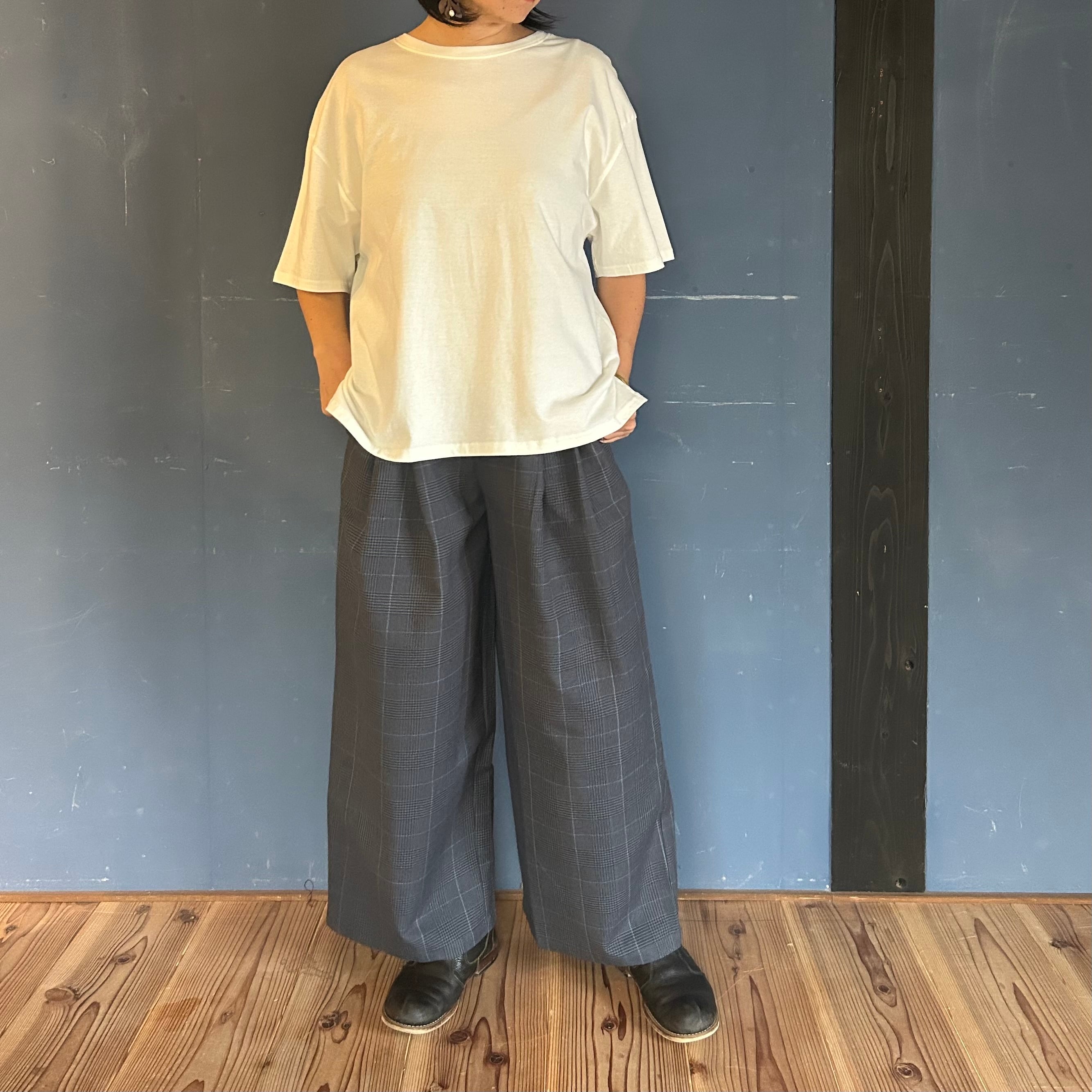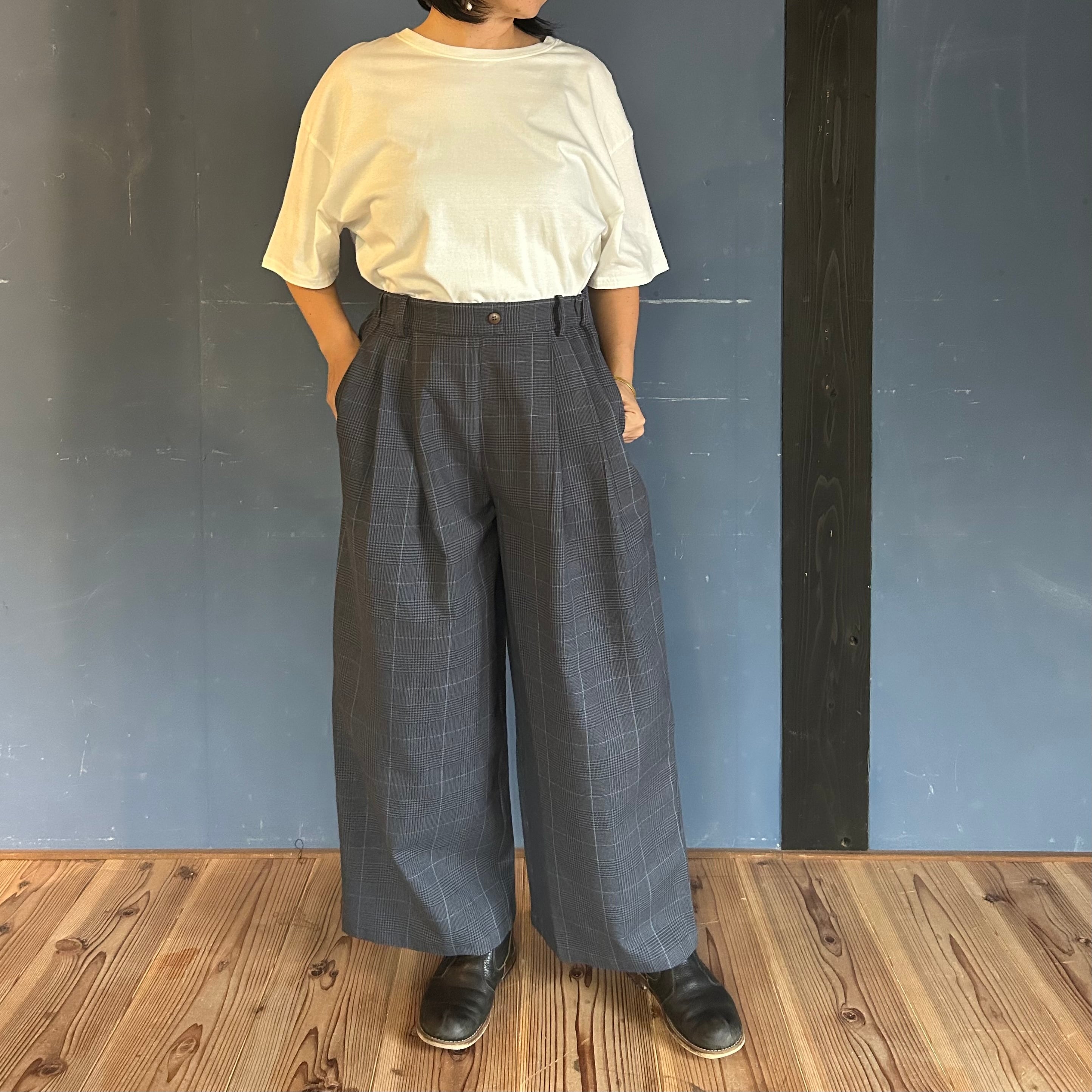 グレンチェックダブルタックパンツ シサム工房